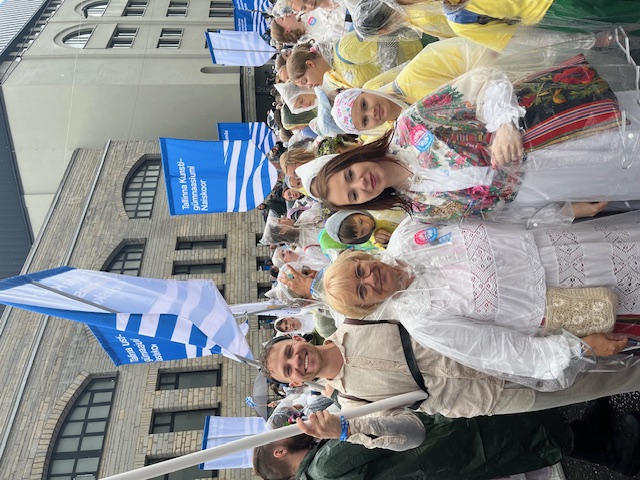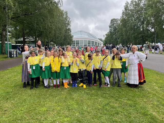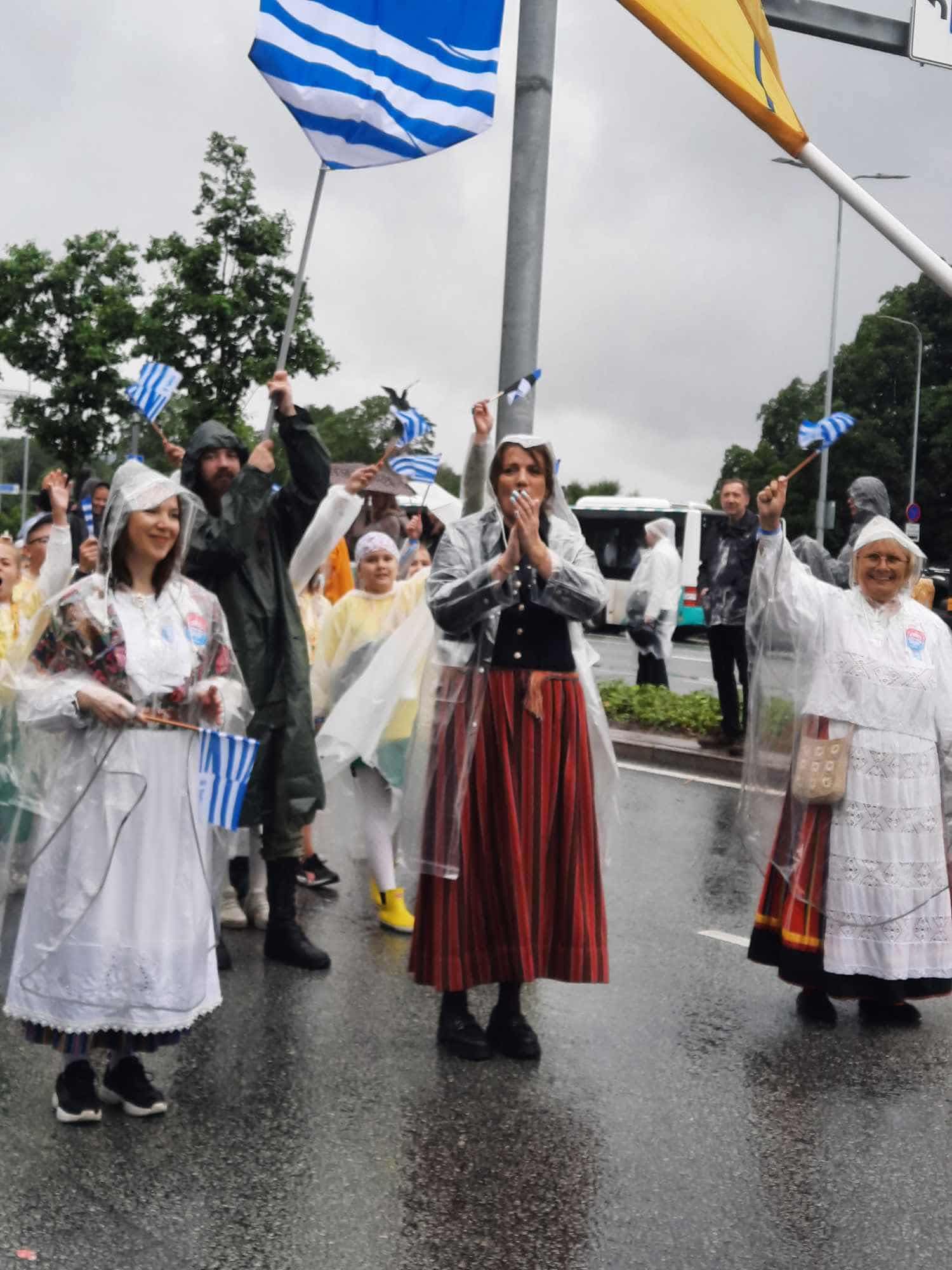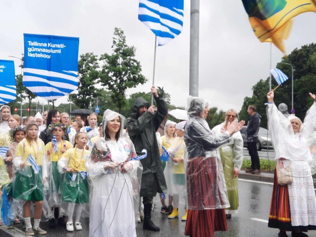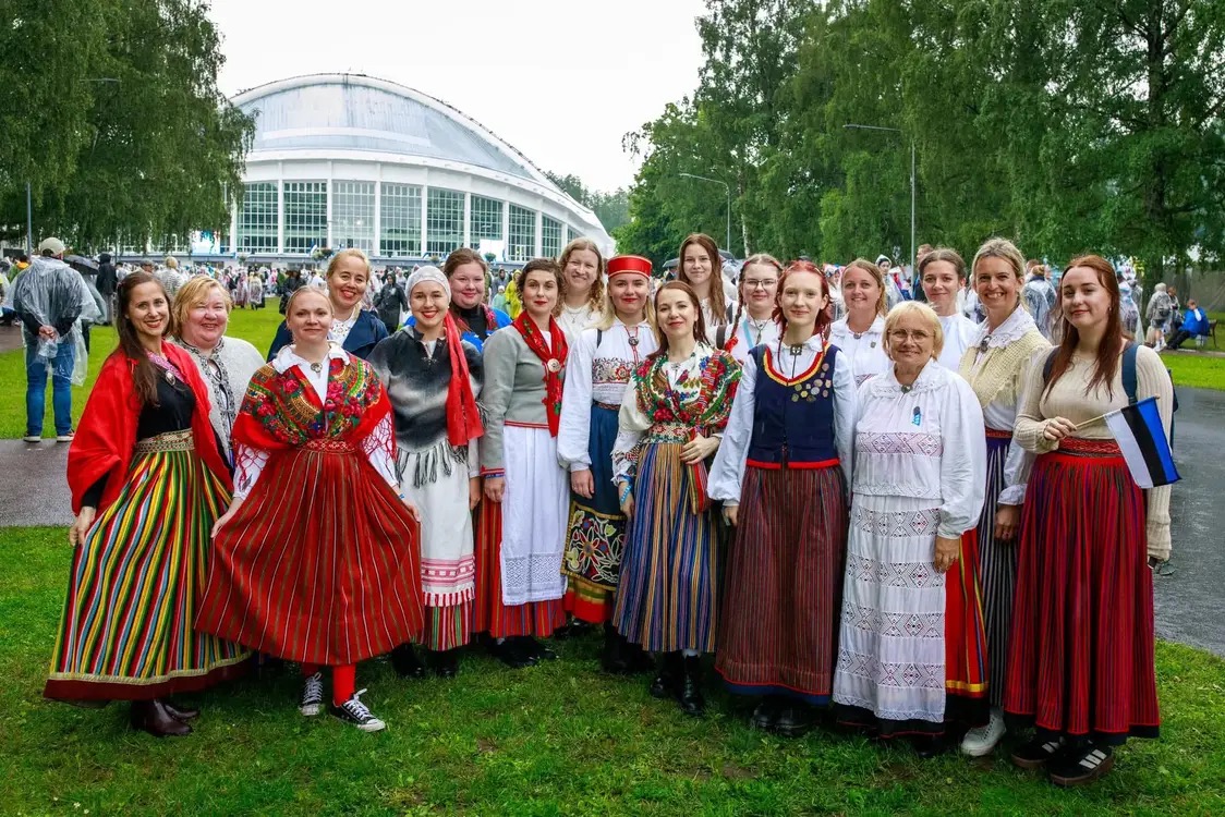 Naiskoori lauljana laulukaare all